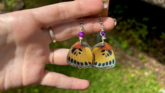 Euphaedra Blue Green Red Verso African Butterfly with Agate